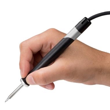 The new TD-100A Ergonomic Soldering Iron replaces the TD-100 Soldering Iron handpiece as standard in the MBT 301 and MBT 350 Solder, Desolder and Rework Stations. The TD-100A maintains the comfort and feel of the original handpiece yet contains many enhancements. Slim and lightweight, the handpiece dramatically reduces grip stress and operator fatigue, enhancing productivity. The TD-100A works with all current Black (part numbers beginning with 70-1124- and 70-1126-) and Gold Series (part numbers beginning with 70-1128-) Tip-Heater Cartridges. The silver colored TD-100A is available as an optional replacement handpiece for all other IntelliHeat-controlled Soldering Stations, including the ST 30, ST 50, ST 70, ST 100 and WJS 100.