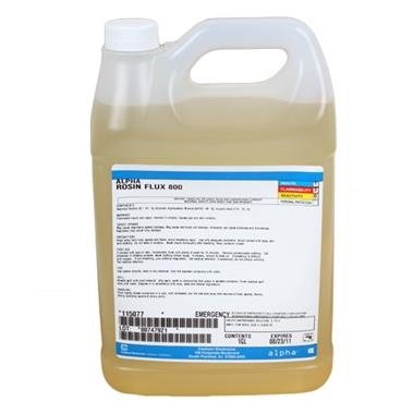 ALPHA RF-800 is a very active, low solids, no-clean flux. It is formulated with a proprietary activator system. A small percentage of rosin is added for enhanced thermal stability. The activators are designed to provide the broadest operating window for a low solids, no-clean flux, while maintaining a high level of long-term electrical reliability. After wave soldering, ALPHA RF-800 leaves a low level of non-tacky residue, which is easily penetrable in pin testing.